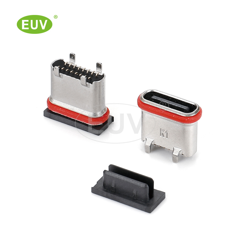 24P 臥式沉板1.4mm 自帶UV膠防水圈 防水IPX7 Type-C母座連接器