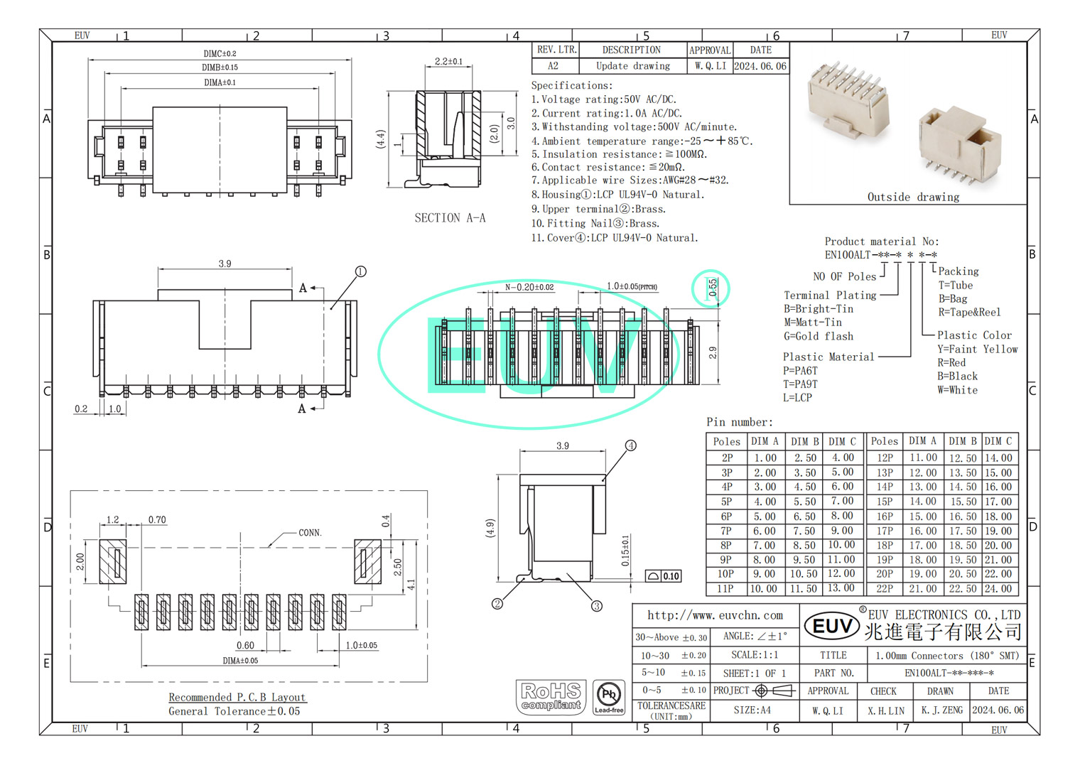 1.0mm間距 單排立式貼片 帶扣 線對板連接器